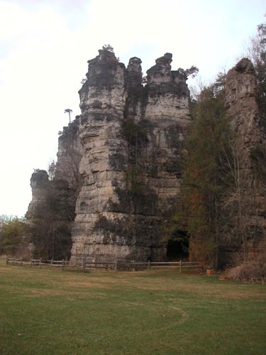 Please forgive, but we're just a little too road-weary to do give this travelogue the attention it deserves, but we do have some photos we can share. Monday, January 5 We left the Poconos in steady rain and traveled thru southern Pennsylvania—coal country. It was interesting to see all the mines and mining towns, but kind of dreary (and the rain didn't help). Passed thru the home town of Yeungling Brewery (which we didn't see, but did see plenty of Yeungling trucks in the vicinity). Got to I-81 and decided to make some time southward, since the weather wasn't cooperating anyway. The rain stopped in the afternoon, and, needing some exercise, we searched out Natural Chimneys State Park: