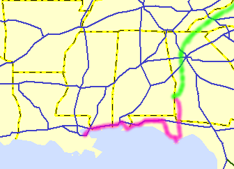Eufaula is a neat little city on the shores of a large lake separating Alabama and Georgia, with lots of elegant homes of every imaginable architectural style, right next to each other. And a great Cajun restaurant. From there we motored south into Florida, down a road that looked exactly like this for nearly 100 miles (this is where lots of our beloved plywood comes from):