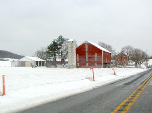 At some point along the line, Vi realized that it was now possible to attend an art workshop in the Catskills in which she was interested that she figured she'd have to blow off because of the trip, so that kind of set our agenda. Wednesday, January 14 Leaving Tennessee and heading north left us with mixed feelings. On the one hand, north meant cold; on the other, north meant decent beer. Surprised that I haven't mentioned beer much? That's because, the further south we went, the lousier the beer got. Back on January 6th, at an otherwise decent Italian restaurant in North Carolina, the waiter proudly announced that they carried the entire Budweiser product line. "That's it?", I queried. He answered in the affirmative, so we had wine. And on January 8th when we were in Florida, we went to a local barbecue joint, sat down, looked at the menu, asked about the beer, and were told that the choices were Budweiser or Michelob Lite. Barbecue without beer? We left, and went to the Mexican restaurant where Vi got her Margaritas, I got my Tecate & lime, and we decided to shorten the trip. Back to the present. We did have plenty of time to make it to Ashokan, NY for Vi's class on the weekend, so we found some nice, winding, scenic roads up through western Virginia (and, indeed, West Virginia). Nice as the Saab is, roads like this made me hunger to be behind the wheel of one of my Alfas: