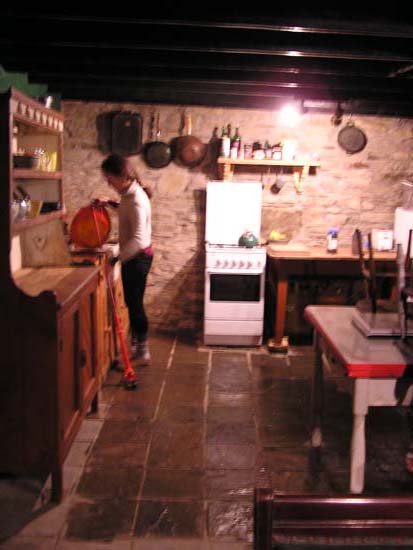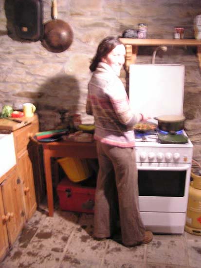 10 hours. Day 2: February 9, 2006 Today’s entry is short, as we didn’t do much but clean. The house is lovely but it has been sitting empty for nearly five years and thus needed a little scrub-down. We did pay Mr. Cottor a visit around midday. He was in the middle of his lunch but graciously invited us in to sit and talk with him while he was eating. Although Jessamy and I have found it quite easy to understand the folk who live in or around more substantial towns, once you get out into the countryside it’s another story entirely, and so the chat was filled with many questioning silences and blank stares. Questions or stories that should have a taken a matter of moments became confusing and complicated soliloquies involving exaggerated hand motions and a bit of loud talking. (After all, if they don’t understand you when you are speaking at a normal volume, they have got to understand you when you yell at them.) At one point when I actually understood what was being said, and Jessamy thought she did, I got to hear her tell him she was sorry he was going to have to bury the hose (horse in her mind) in Tom and Kate’s yard. With all that said, Mr. Cottor has been very good to us and has answered many questions that have already come up. The other event of the day took place when Jess and I decided it was about time to take a shower. Everything was all set; soap, towel, shampoo, bathmat, water, water, water….nope! No water in the shower. Not even cold water. So after an hour or so of trouble-shooting and still no water, we decided that cleanliness was necessary. Several bowls of warm water later, Jess and I were both squeaky. Tomorrow we are going to head into town with Mr. Cottor to buy a few things at a local flea market and inquire about buying a car. It is quickly proving that a mode of transportation in essential, and bikes in this area just won’t cut it.