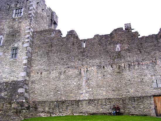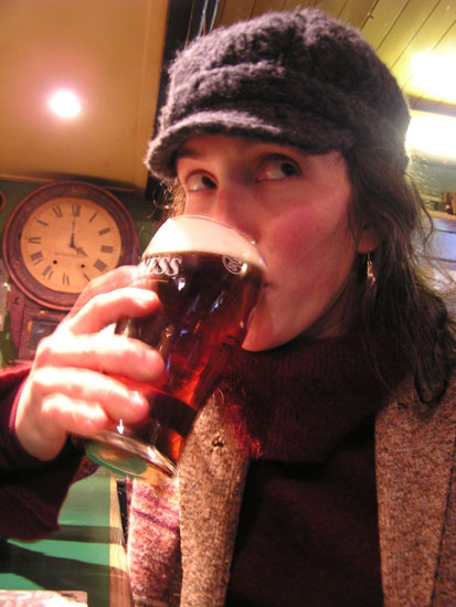 above for a larger view, February 25, 2006 Leave it to my wife to go on and on about spring, the flowers, and what people in the other parts of the world call sunshine. No, it never gets cold in County Cork they say…it’s in the Gulf Stream after all. Well, it’s pretty freakin cold. Temps today hovered around 35F, and while Jessamy and I were on a run we took in the beautiful Irish countryside while being pelted with hail. On the drive into town this morning, we were even able to see some snow-capped peaks in the not-so-distant hills. Despite my bellyaching, though, things here are still lovely (it’s easy to say that as I sit next to a nice hot fire). I have even figured out how to get heat out of coal. Add a lot. Jess and I have been fairly busy, or at least as busy as two people who are not working and have next to no responsibilities can be. We visited our first pub, Ma Murphy’s, which is what they call a traditional pub. When you walk in the front door, there is a small room that is set up like a miniature version of a country store, except that all the goods are behind the counter, and these days, instead of selling what you might imagine to be in a convenience store, all they sell is alcohol. (It seems that the larger markets have forced them out of the dry goods game.) There is another set of doors, however, from behind which comes the contented laughter of men in their element. Upon passing over the threshold into the darkness, you feel as if you are stepping into a room that was made especially for you, a beer drinker. Most of the “traditional style” pubs have been modernized and now bear more of a resemblance to an average American bar, but the old style still exists and I’m glad to have experienced one before they are all gone. The barkeep at Ma Murphy’s (the twenty-something-year-old daughter of the proprietor) was telling Jess and me that, back in the old days, it used to be that only men were allowed in the back room, so all the pubs had a separate front room where the women would gather and drink their whiskies (while their husbands drank their stouts in the back). Needless to say, we will be back to Ma Murphy’s (as will anyone who comes to visit). After convincing ourselves that one pint (er, I mean two) was enough, we headed out to our neighbors’ favorite restaurant, The Snug. The Snug is a lot like brew houses you would find near the coast back home, with the beer and sailing paraphernalia on the walls, with one major difference: it has six tables. Jess and I both got beefburgers, as they are called here, but instead of getting the expected two slices of bread with a patty in between you get two patties (that are flavored more like meatloaf than hamburgers) and no bread. Atkins style. The beef burgers were delicious, however, and I’m sure we will be back there as well (you too, if you want). Another interesting side note is that folks in Ireland, when dining as two, share the same side of the table. I’m not sure why, as it would seem harder to talk that way, but that is what they do. So, needless to say, Jess and I sitting across from one another stuck out like the Americans that we are. But we had something that no one else did…eye contact. We also took a bit of a road trip to the town of Killarney in County Kerry. It was about an 85km drive that our little Ford handled like a champ. As can be expected, the roads that take you there are narrow, winding, and far from smooth. In fact, at one point during the drive, we reached a stretch of road that was straight and flat for about 200 meters and both Jess and I looked at each other in disbelief. Just outside of Killarney is the Ross Castle (my first), which unfortunately was closed for winter. After walking around the castle and grounds a bit, we headed into Killarney for a quick look and a pint. Killarney itself is a good-size town that we’d have liked to have explored more, but after my Guinness and Jessamy’s new best friend, Smithwicks (or Smithicks, as they say, which is an ale, hoppy and delicious), we had to race against the sun to get back home. (Winding Irish roads in the dark = danger.) And, finally, this morning we paid a visit to our local immigration officer to take care of the whole “them letting us stay in Ireland” thing. It turns out that problems here can be solved in much the same manner that problems at home can: money. We showed her that we had enough money to live off of while we are here, as well as enough to take care of medical expenses in the case that Jess were to “wake up sick in mornin’”. Though it’s not yet official, she told us we can most likely stay until the middle of August without a problem. With that legal issue out of the way, Jess and I are planning more road trips, with a possible excursion to Dublin next week to visit a friend from Burlington who is there teaching for the year.