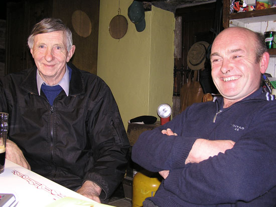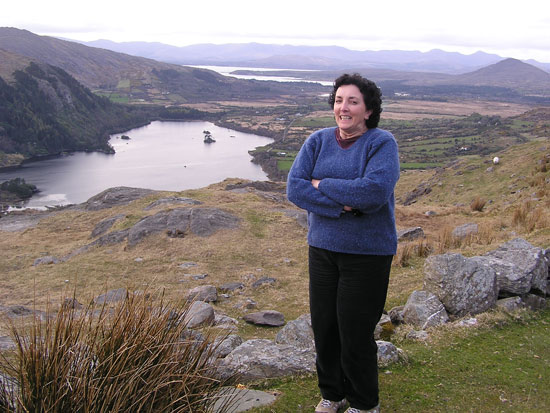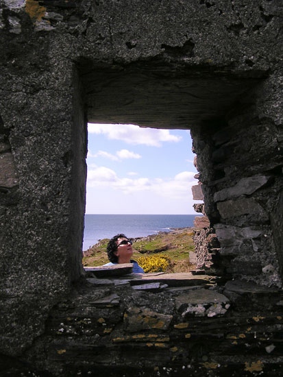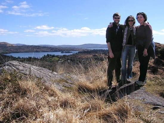 above for a description, April 16, 2006 Two short days after saying farewell to Abigail and Jessie, we were back in Cork City to pick up Dorothy. My mom had been to Ireland several years ago when my aunt (her sister) was living in our tiny cottage with her husband and two kids (hard to imagine), so both the country and the house were already familiar to her. What she did get a good dose of this time, however, was good old Irish blarney: conversation that can only be had with total strangers and that lasts more than an hour. Our first encounter was with Paul, a neighbor who lives a mile up the road but whom we had never met. His dogs ran out to greet us as we walked by his house, and Paul came out to make sure we didn’t mind. The conversation quickly turned from dogs to computers, automated voice message systems, Seinfeld, Father Ted, the Y2K scare and speedy Irish drivers before we were invited in for a cuppa tea. We stayed for over an hour and left with six fresh eggs, a package of kippers, a guide to standing stones and megalithic tombs in the Mealagh Valley, and an invitation to Paul’s birthday party on the 21st. The following morning as Bobby and I were having tea, our front door slowly slid open and in walked a man we had never met. He introduced himself as Paul O’Neill and, since he was standing in our living room, we offered him a cup of tea. We settled in at the kitchen table and the discussion ran its course: the history of our cottage, what his daughters are doing with their lives, the standing stones in his yard, the downfalls of the Catholic Church, his job as an excavator and farmer. An hour or two later, he recommended that we spend the day on Sheep’s Head Peninsula, thanked us for the tea, and walked out the door, leaving us wondering why he ever came in the first place, but happy that he had. Next morning, a knock on the door. It’s the British Jehovah’s Witnesses. I don’t understand how these people survive here in Ireland, but here they are at my door for the second time. You see, last time they came I took the book. It was just too tempting—it promised answers to intriguing questions, like “Where are the dead?” So they came back to see how I found the book. I told them that the pictures of heaven looked nice, with the stars and the dolphins and all, but that I just wasn’t sold on the religious ticket. This woman, by the way, thinks Bobby’s name is Barbie. The first time she came and Bobby introduced himself, she said “Bahbie—like the doll?” and Bobby, anticipating “Like the pin?” said yes. Would you trust this woman with your soul? Anyway, later that day we stopped in Glengarriff to pick up some film on the way to the Beara Peninsula and once again were caught up in a random, winding exchange. I don’t remember how it started, but we spent the better part of an hour in a tiny, dark mom-and-pop variety store with two Irish men and their friend from California. The proprietor, Tom O’Shea, is a tiny man with no teeth who, at 83, holds the title of oldest man in town, and presumably the most talkative. After a while, we had to interrupt his stream of thought to thank him for the film and get on our way, as we had already gotten a late start and had a lot of driving ahead of us. So Mom’s visit was just grand until Good Friday rolled around. It was the day before she was to leave and we were spending the day and night in Cork City. There’s not a whole lot to do in Cork City other than walk around, shop, and visit the pubs, and we planned to do a bit of each. Having walked for quite a while and shopped a bit, we decided it was time for a pint, only to find that NO ALCOHOL IS SOLD IN IRELAND ON GOOD FRIDAY. I mean none. Pubs are closed, as are off-licenses, and restaurants bring pitchers of water to the tables. So there we were at 4:00 having walked all day and just wanting a pint and then it started raining. Restaurants were closing early and the only movies playing at the theater were animated or starred Sarah Jessica Parker and Matthew McConahay. Our moods turned sour. However, we had a good early dinner, washed it down with water, and found an art-house movie theater playing "Tsotsi" at 9 (great movie). The next morning we said good-bye to my mom, had a quick breakfast, and headed for the bus station to pick up Karen and Bob.