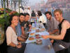above for a description, July 6, 2006 Well, the Bobs and I have made it as far as Romania and I think we may just stop right here. We are in Sigisoara, the heart of Transylvania and the birthplace of Vlad the Impaler, better known as Dracula. Vlad was born in 1431 in what is now a small restaurant promising to "suit all of your touristy needs" and, aside from the plastic picture of a bloody-toothed vampire in the window, the building doesn't seem to have changed much since Vlad lived there. In fact, Romania seems to be strangely and wonderfully stuck in the past. Taking the train here from Bucharest, we saw farmers haying their fields with sickles and people using horse-drawn buggies as a mode of transport. Here in Sigisoara, the houses are ancient and crooked, smooshed together and crumbling in places and almost painfully beautiful. It is quiet here too, as Romania doesn't feature on most people's trip itineraries, but I don't know how much longer that will last. Anyway, we started this trip on June 1, and are traveling the continent on unlimited 60-day Eurail train tickets. In theory, this means that we can hop on any train, any time, anywhere within the 18 allotted countries. As it turns out, tho, most trains require reservations and with that comes a fee, so it's not quite the deal we were expecting, but it's a deal nevertheless. Our travels thus far have brought us through Spain, Morocco, Italy and Greece, with a brief jaunt through Bulgaria on a smelly, sweaty night train where we shared a compartment with a chain smoker. We started our trip in Barcelona, which was incredibly beautiful with ornate, dusty old buildings and wonderfully laid-back people. But as it was big and expensive and we are not really city folk, we sped through there and Madrid rather quickly. We landed in Grenada, which was, to us, the most beautiful place in the world. It looked like it had been created as a set for a movie—winding cobblestone streets flanked by beautiful whitewashed houses with brightly colored shutters, all huddled close together with no room for yards or cars or anything else. From there, we went south to Tarifa and took a boat to Tanger, Morocco. On the boat, we met three guys who turned out to be our traveling companions for the next three days. They were a dentist, a bellhop and the owner of the only exclusively greencar dealership in the country (greencarco.com, if you're interested). Together, we took a night train down to Marrakech, and only managed to keep our own compartment on the train by stacking bags to make them look like people and keeping the lights turned off—sneaky and unfair, yeah, but we thought it might allow us to sleep, though it didn't. We arrived in Marrakech early in the morning, checked into a cheap hotel right in the medina—the old town—and got a great breakfast of coffee and fresh-squeezed OJ and crepes with honey for 1.80 apiece. We spent the day wandering thru the market, checking out the monkeys in suits and snake charmers and barrels of spices and neon-colored sweets, and then treated ourselves to Turkish baths. Tho I can't speak for the men, my experience was pretty crazy: I laid naked on a tile floor while an equally naked woman with gigantic breasts scrubbed the daylights out of me till all my skin peeled off, and then she violently brushed and washed my hair while other women sat around chatting and shaving their nethers. I came out of there red and shiny and clean as a whistle, and it cost only 6 bucks and I got to keep the washcloth. Anyway, at night the square on the medina turns into a type of circus with belly dancers and boxers and acrobats and dozens of vendors selling delicious food for next to nothing, so that is where we ate dinner and spent the evenings milling about and trying our best not to make eye contact with anyone, as they take that as an indication that you want to give them money. After two days in the suffocating heat (made worse by the long sleeves and pants I had to wear, for it's a Muslim country) we made it back up to Tanger where, overconfident from all the successful bargaining we did in Marrakech, we tried to get a taxi for 20 Dh and were told to put it up our ass. So we paid 40—but obviously not to THAT dude—and made it to the port (where the security guard sat immersed in a crossword puzzle while weary passengers pointlessly passed their bags thru the x-ray machine) and back to Spain. We spent a couple of nights on the east coast—in Cadiz, a pretty nice beach town—before making our way over to Italy. Our first stop in Italy was Cinque Terre, a little cluster of five perfectly beautiful villages built on cliffs overlooking the ocean and connected by hiking trails. From there, we stopped over in Pisa just long enough to look at the tower while eating salami sandwiches, and then on to Florence, which didn't impress us too much. The problem with Florence is that all of the beautiful art is trapped inside buildings you must wait hours to get into, and we were only there two days, so it was a bit of a blur and a disappointment. Venice, tho, was our next stop and we were pretty much blown away when we walked out of the train station and saw that the roads are indeed made of water! I don't know why this surprised me, but if you've ever been to Venice you know that it is pretty much just like in the romantic pictures, tho a gondola ride is over 100 quid and nearly twice that if you want him to sing. And there are tourists, yes—wall to wall, in fact—but there are no cars at all and this, to me, is a fair trade. We spent only one night in Venice before catching a train to Rome (with a brief stop in Naples for the best pizza in the world and beer) and, just as we were amazed to walk out of the station in Venice and see a river instead of a road, we were equally amazed to walk out of Rome Termini and see a pile of trash instead of a sidewalk. Rome is dirty—so very, very dirty—and while we were there it was also ho