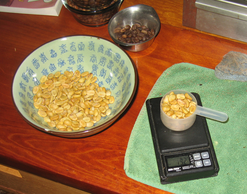 Since the beans were so large and light, we decided to use weight rather than volume to measure the amount we'd roast — turned out that, by weight, the entire 2010 crop would make one pot of coffee