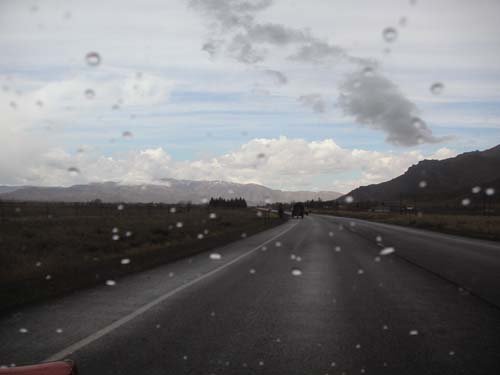We actually boogied southeast on the Interstate (I-84, in fact) for a couple of hours in order to avoid Boise. Boise, from what we saw of it, is a quaint, picturesque city, in the same vein as, say, Trenton, NJ. Soon, however, we were back on the secondary roads, at which point it started to rain. Undaunted, we paid a visit to "Craters of he Moon" National Monument. This is a huge lava flow caused by eruptions that occur every two thousand years or so. We waited around for a while, but decided to leave before the next one.