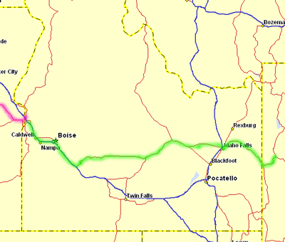 Well, we made it all the way across the fat part of Idaho and didn't even have to stay there! Wednesday night, we stayed in Ontario, Oregon, not far from the Idaho border. Tonight, we're staying in Jackson, Wyoming, not far from the Idaho border. Whew!