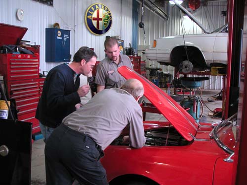 Oh, and about those prominently displayed Alfa Romeo signs in the shop — sorry, we PhotoShopped them in for all of you Alfisti who have ever broken down and wished that there was really an Alfa shop right there to make the fix.