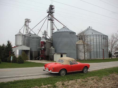 Once again, as we awoke in (gulp) Peoria, Illinois, we rolled over, rubbed our eyes, looked out the window, and saw ... SUNSHINE!!! Our spirits were high, and we were anticipating another Giubilous day riding along in a vintage Alfa Romeo. We spent most of the morning driving mainly eastward through Illinois and into Indiana, looking for something more interesting for you than these ubiquitous grain silos: