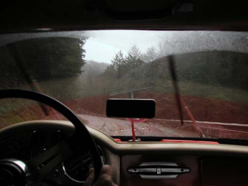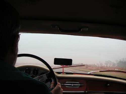 At first, we just encountered fog, but then it was rain pretty steadily for the rest of the entire day. Unsolicited Rain-X commercial: A few days prior, we applied some of this marvelous product to our windshield, and indeed we hardly used the wipers all day—the rain just forms little beads and blows off the windshield (at least at any speed above 90 MPH...).
