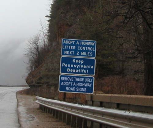 Our country is littered—littered, we say!— with these gawd-awful adopt-a-highway signs. Here's one that we'd pay to see: