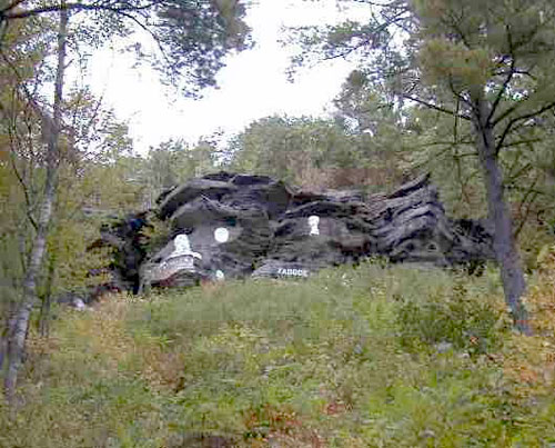 Today's culture feature was a real treat for us - Pratt Rock, the Mount Rushmore of the East! Zadock Pratt, founder of the town of Prattsville, NY, was a 19th century tanner, banker, congressman, and builder. Philanderer should also have been added to his achievements. He managed to have 5 wives, including TWO PAIRS of sisters! He had Pratt Rock carved for his many loves, one of which was his horse. The Pratt Rock information kiosk didn't include details on his relationship with his horse, although his horse's gravesite is there but none for any of his wives. Hmmmmm. Check out this picture of Pratt Rock: