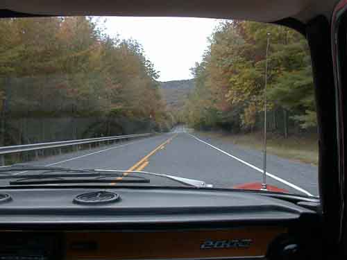 Our last day on the road turned out to be cool with a mixture of sun and clouds and overall quite pleasant. (Hey, just like yesterday!) We motored out of Binghamton, NY, headed out wonderful roads through the Catskills (early enough to beat the New Jersey leaf-peepers), into the Pittsfield, MA area to visit friends, and finally onto the Mass Pike for the last part of the ride home (one of the few times we were on an Interstate highway).