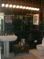 of Vi's studio (ex-master BR). Kinda wild, with black marbly tile everywhere