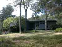 the house, viewed from deep in the back yard. The BRs etc. are in the wing