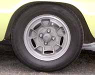 Unique, desirable Italian Mille Miglia wheels with the Alfa Romeo script cast into the alloy are installed with new Michelin Pilot XGT-H4 205/60HR14 tires all around.