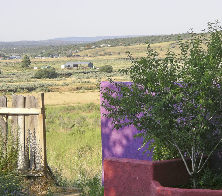 .................we headed for Saucy and Wad’s house in Cuba, NM. They built their house primarily by themselves, by hand and it’s off the grid – they have solar and a generator as backup. It’s gorgeous, on 30 acres of wonderful land with a cliff behind the house and a view for miles to the next mountains. We hung out, visited Saucy’s studio to admire her paintings, walked the land and, of course, ate, drank and giggled.