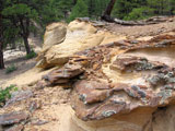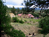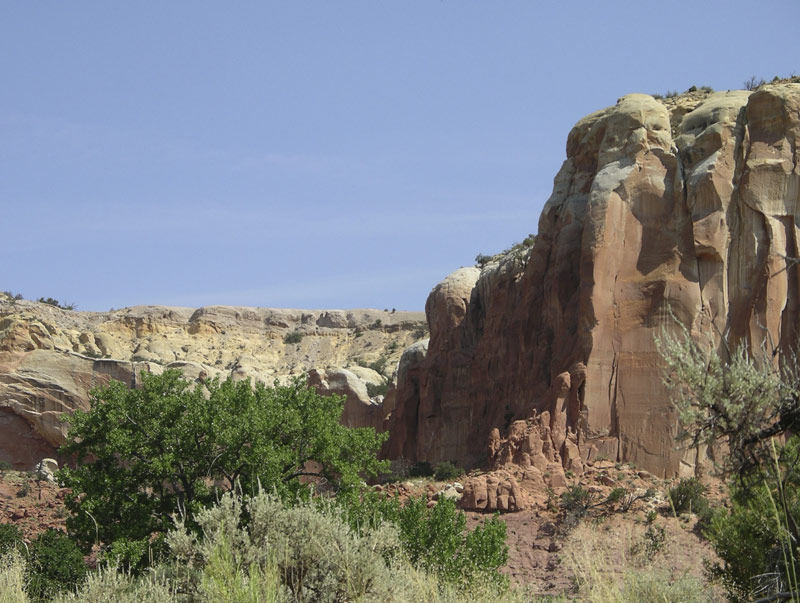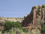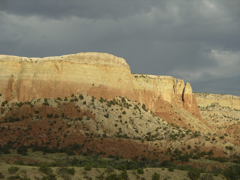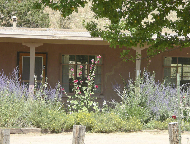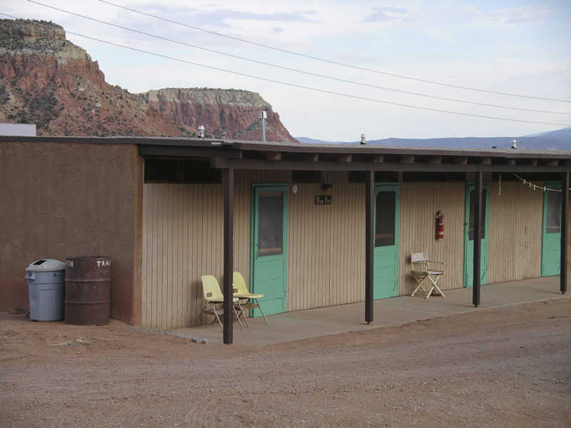 After visiting a sculpture center and some open studios, I headed for Ghost Ranch. This is where Georgia O’Keefe did many of her paintings. It is now run by the Presbyterians and they have workshops but they also rent rooms as a B&B. I stayed one night and had three meals for about $65!!! Of course it was cafeteria dining and the bathroom was at the end of the bunk house. My room wasn’t ready, so they moved me to a deluxe room for the same price. The bunkhouse has green doors, the place I actually stayed had lots of flowers. Such a deal. The scenery was wonderful and I spent the evening and next morning hiking and drawing all by myself. Fun.