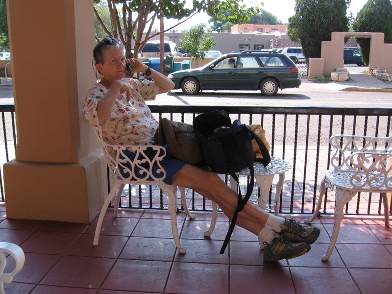 We headed for Santa Fe the next morning and met Saucy. We stayed at the very fancy St Francis hotel and shopped, ate, drank, giggled and visited galleries for two days. Notice the picture of Mary on her cell phone. By the end of the trip we wondered if it was attached to her ear.