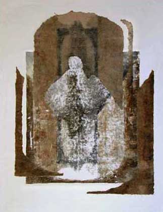 In 1998 I began to experiment with more media and incorporated wax, cloth, sculptural work, oil paint, hand made paper and computer images into my work. The pieces labeled 'I am a Woman' were hung in my show at the DeBlois Gallery in November, 1998. The Visione Dell'Italia images are monoprint collages done while I was at a workshop in Florence, Italy.