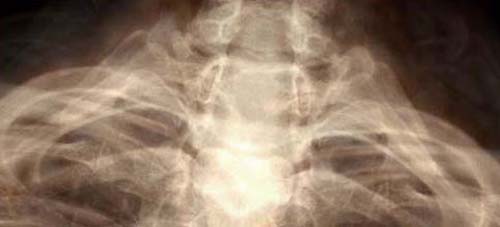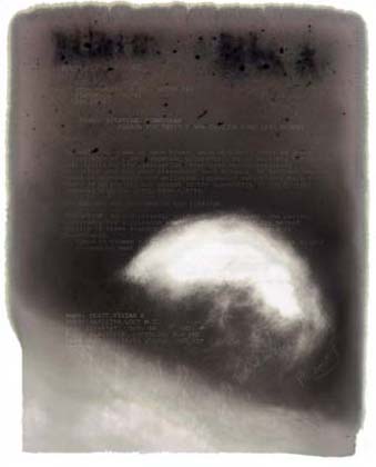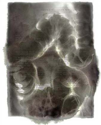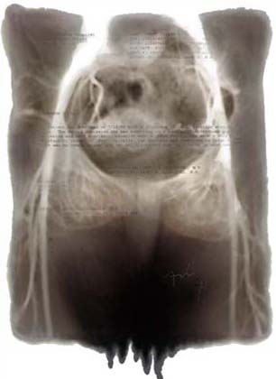These images were shown in my MFA Thesis show at the Mass College of Art. In the first six images, I used the computer to combine my medical records with x-rays. The edges were created by encouraging the ink to run. The other four images are my x-rays that were modified in the computer and then printed large (2' x 4'). All images are inkjet prints on Vellum.