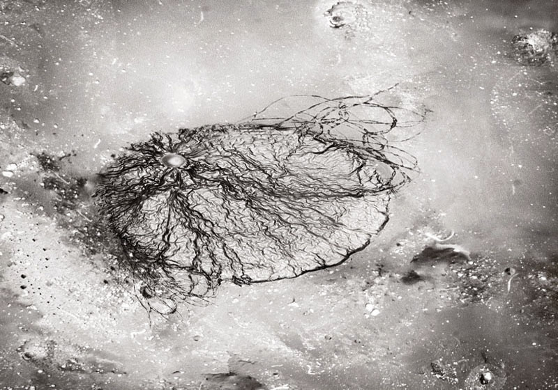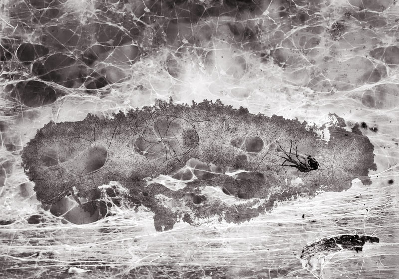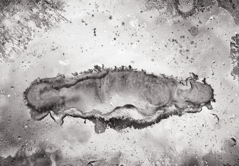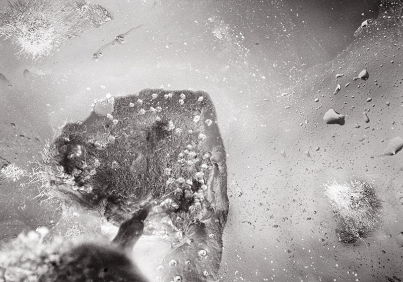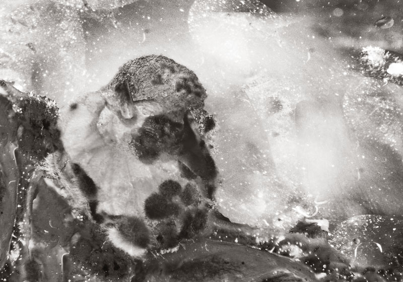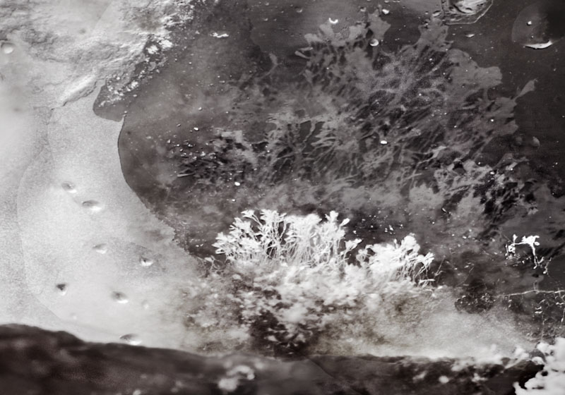 Recently I've been pushing my work toward abstraction and decided to try limiting myself to a palette of black and white. I found the process frustrating, feeling that most of my imagery is more successful with the addition of color. But I have developed a few abstract black and white images by various processes. Some of these images began as experiments with ink on a slick surface, others began as macro photos of mold. In all cases, the images are abstract but still very organic, enigmatic spaces for the viewer to explore. The final work is a composite of seven images and I just couldn't convince myself to go all the way to black and white.
