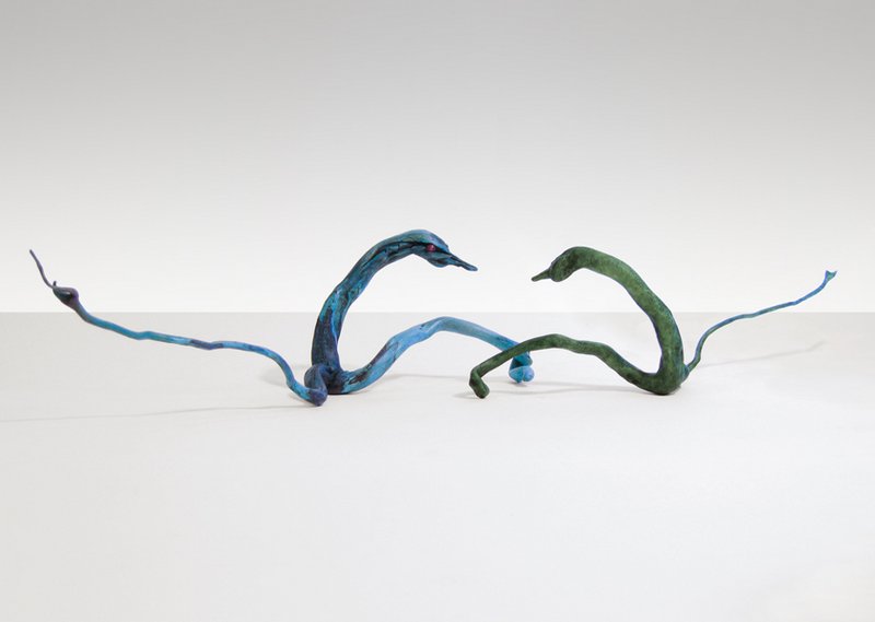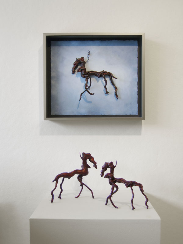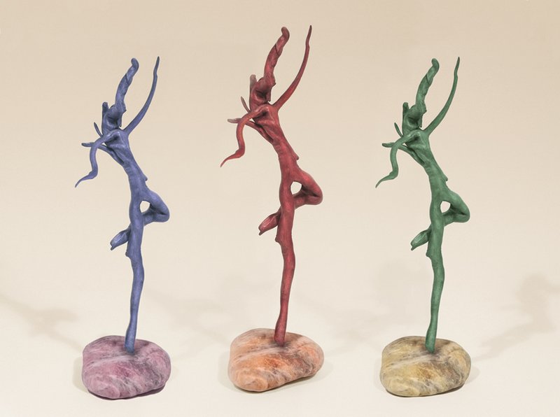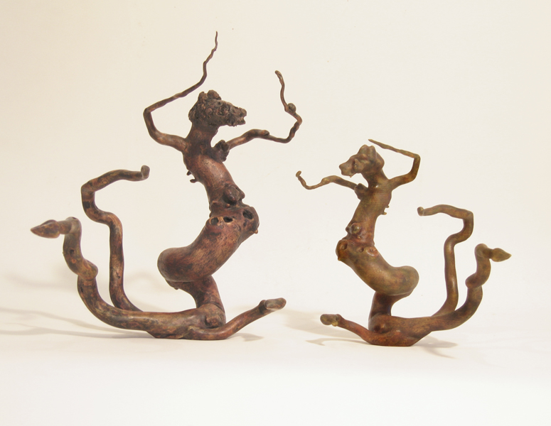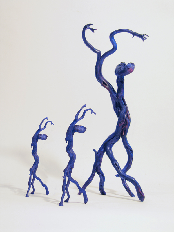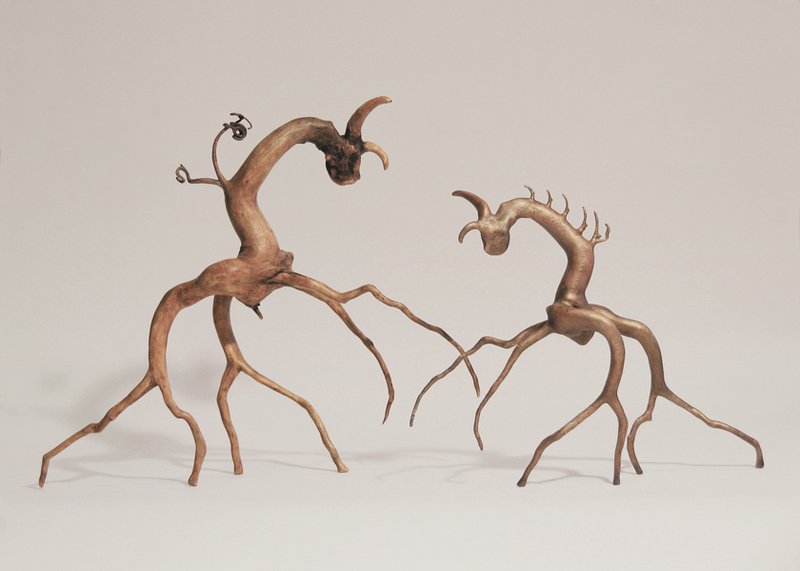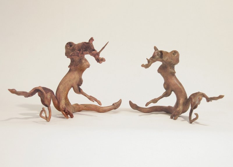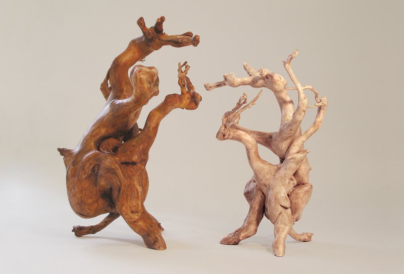 Although I rely heavily on the computer to create much of my work, I find it rewarding to work in a medium that is divorced from technology. I am continually scrounging for found wood, usually roots or driftwood, and enjoy the meditative process of slowly turning this natural material into sculpture. I carve to create the forms and, using glues, often combine several pieces of wood to develop three-dimensional fantasy creatures.