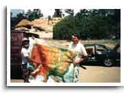 On Tuesday, June 2, Vi and I flew to Phoenix and were met at the airport by Dan Cogswell, the guy who owned the Alfa we were buying. We drove him home and then spent three days touring Arizona and New Mexico in our new acquisition, arriving in Cuba, New Mexico on Friday. Meanwhile, brother John flew to Albuquerque on Thursday and linked up with us in Cuba on Friday. Cuba is where our friends Saucy (Harriet Russell) and Wad (Wadman Daly) live and we spent a couple of totally enjoyable days visiting with them. Then John and I left in the Alfa, taking just over a week to get home via a northerly route, while Vi toured the Southwest for a while and flew back on the 16th.