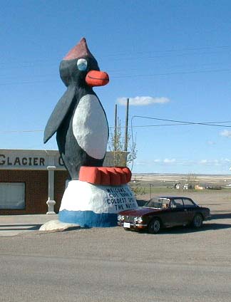 Day 7 - May 15Whew! A few folks we met along the way suggested that we ought to avoid Idaho altogether, since some of its residents are reputed to have an aversion to people driving them furrin sports cars (and they're armed). But since Idaho was in our way, we gritted our teeth and blasted through. Hey, it wasn't so bad! We left north out of Spokane on US Route 2, which will be our byway for the next couple of days. Yesterday, it rained all day and the forecast was for more today, but they couldn't have been more wrongit was beautiful! Our route took us through Glacier National Park, a beautiful area in the Rockies. We tried to take a northern 50-mile detour through the park, but it was still snowed in and won't open till Junegood thing we asked. Tech Corner: (Hope this doesn't become a regular feature.) Our fuel consumption appears to be on the high sidewe're getting less than 20 MPG. It's partly due to altitudes and, uh, the pace we're maintaining, but still something seems amiss. Today, we encountered some very rough roads in a construction area, and they jarred loose the wiring to the side marker light, which then was shredded by the font tire. We also had to replace a broken headlight this evening. But otherwise everything's going fine, and we're enjoying a lot of terrific American Beauty. Montana is the Big Sky State (or something like that), and we can testify to it. We're (sadly) beyond the Rockies now and about one third of the way across Montana, staying in the city (?) of Shelby in some gawd-awful fleabag motel because of some gawd-awful golf tournament that's going on. (Golf in Montana?) This is where