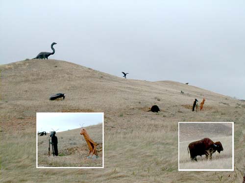 Culture Feature These pieces are on display along the side of Route 2 just outside of Wolf Point, Montana. The "sculptor" had a sign there and was offering them for sale. Sure wish we had more room in the Alfa.