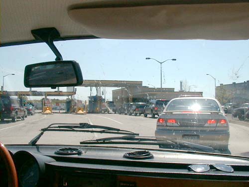 Here we are waiting our turn to fake our way through Canadian Customs. The